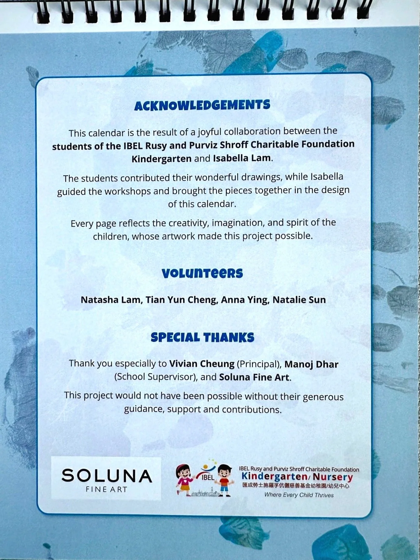 The completed calendar was professionally printed and distributed to all participating children and their families as a keepsake. Beyond its cheerful visuals, the calendar became a tangible celebration of creativity and inclusion—proof that small acts of art and collaboration can create lasting joy and pride within a community.